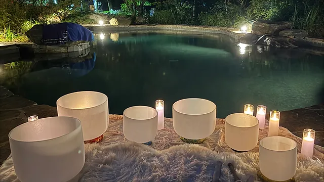 Join us for a magical Friday evening of deep relaxation and healing vibrations. From 6:15–7:30 PM, you’ll float effortlessly on a twin size float beneath the open September sky while immersed in the soothing resonance of a seven-bowl crystal sound bath, illuminated by gentle candlelight.